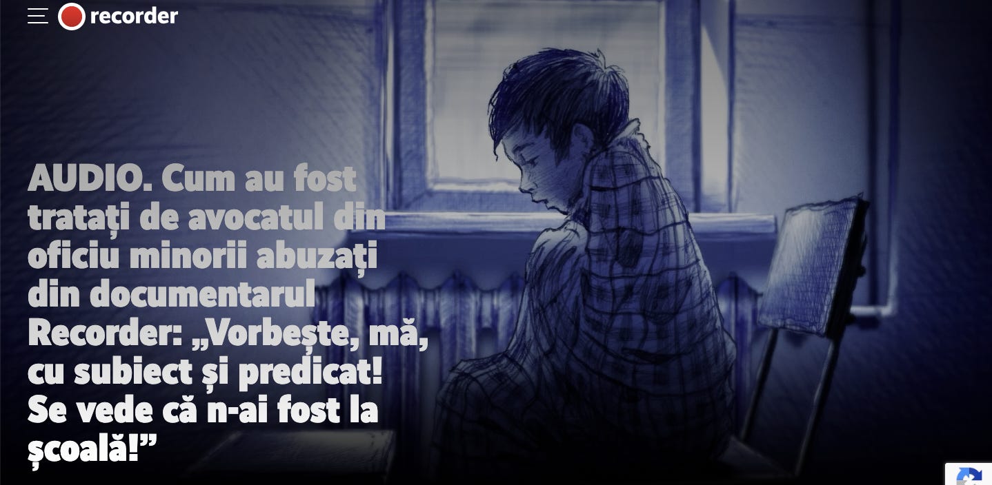 Așa vorbește o avocată care „apără” din oficiu un client de 17 ani, victimă a abuzurilor sexuale în sistemul de protecție a copilului. Puteți să ascultați înregistrarea în acest material Recorder. Și adunați-vă puterile să vedeți documentarul Singuri.
